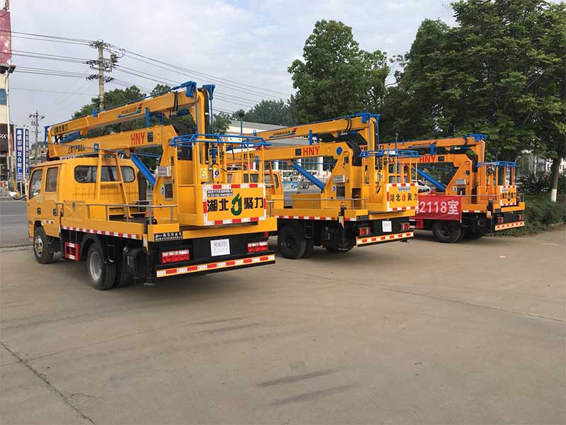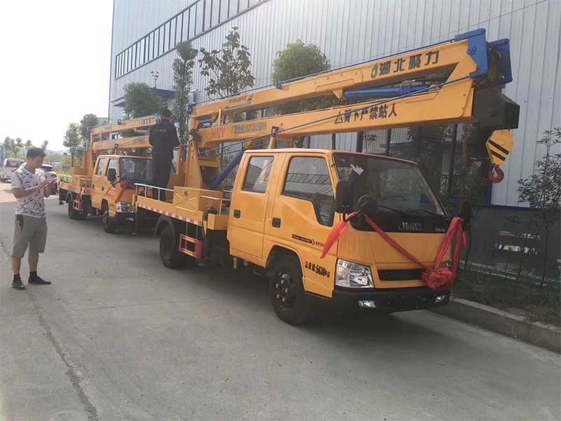 江鈴16米高空作業車配置參數:江鈴順達新款雙排駕駛室,軸距3360mm,配備五十鈴108馬力正宗國五發動機,5檔變速箱,江齒五檔變速箱,7.00R16原廠鋼絲胎.作業高度為14米-16米,液壓360