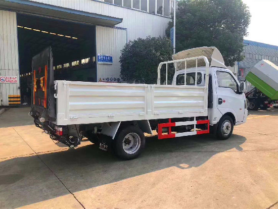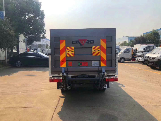 | 專用功能說明: 東風途逸國六12-15桶桶裝垃圾車上裝配置:凱卓立液壓式尾板,**大提升能力500KG,一次能裝卸多個垃圾桶,設有固定式和有線式兩種電控操作方式,尾板電源設置**開關;在升降尾板上安裝安全**示小旗、反光**示板、安全鏈條;電控操作面板設置全車緊急停止按鈕。 |